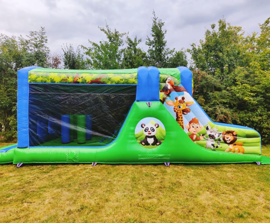 The Jungle Combo is the perfect combination of a bouncing castle and a slide. Kids can jump and bounce to their heart's content, then slide down the exhilarating jungle-themed slide. This inflatable combo is not only fun but also provides a safe and secure environment for children to play and explore.