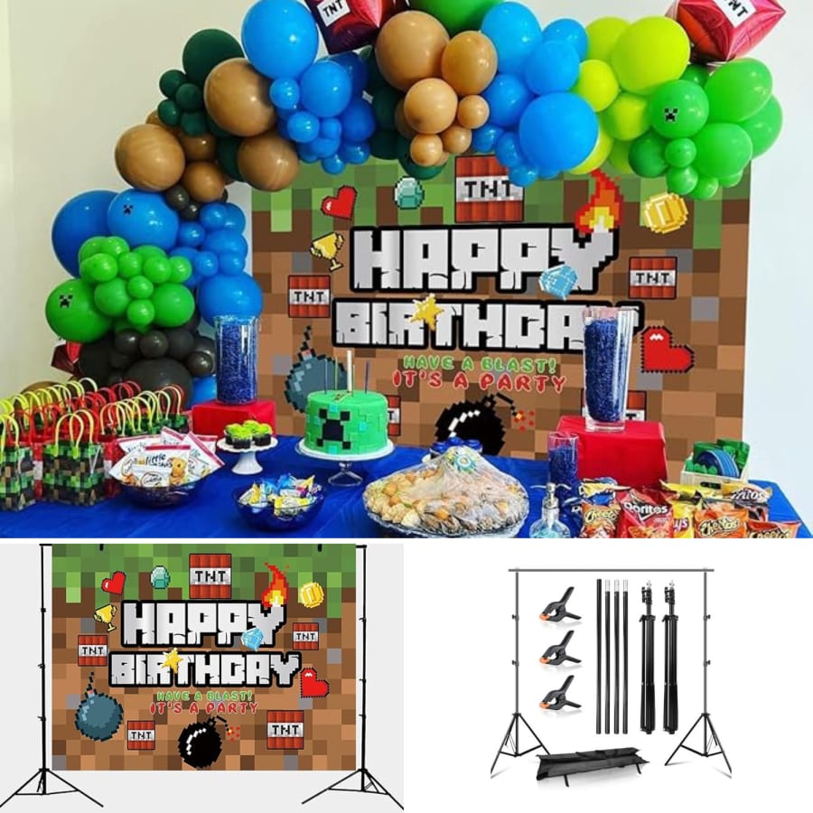 Level up your celebration with our Minecraft Backdrop with Stand — book today and let the adventure begin! 🎉🎮