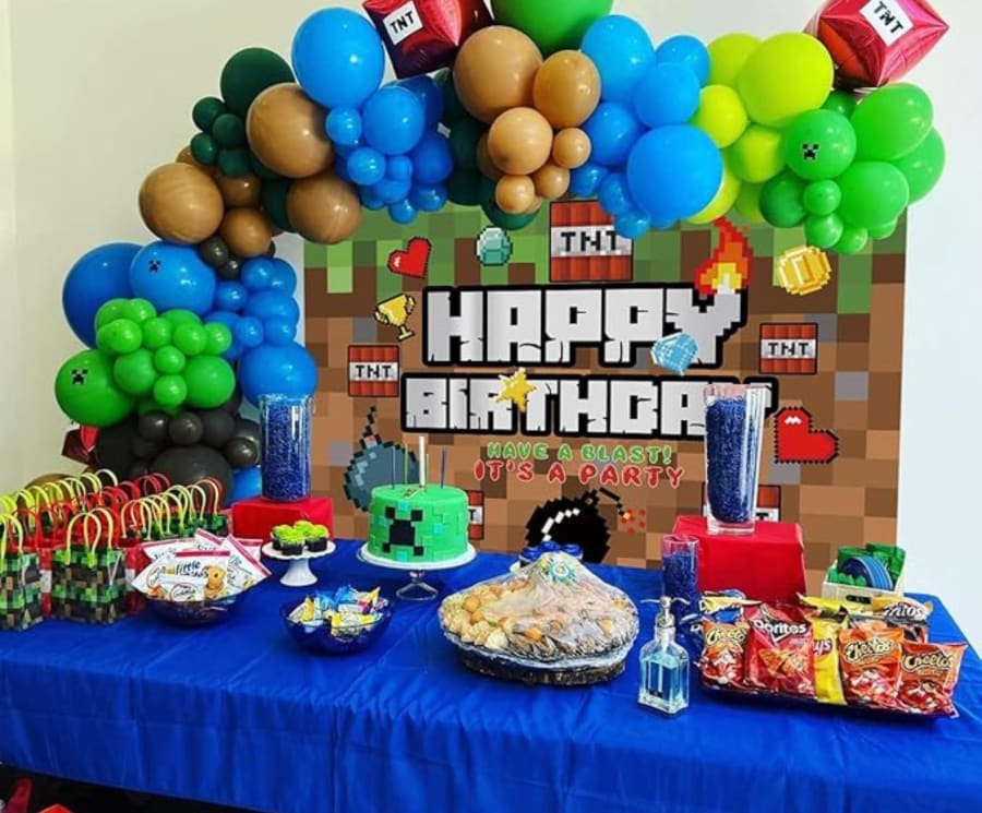 This Minecraft party backdrop is ideal for photo booths, selfie stations and party pictures. Friends, family and guests can snap fun, themed photos that make unforgettable memories and look amazing on social media.