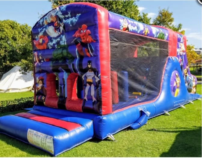 🦸♂️🏰 The Superhero Combo is the heart of the adventure! Bursting with vibrant colours and superhero designs, this combo unit combines bouncing, climbing, and sliding, inviting kids to explore their superhero abilities in a fun-filled environment.