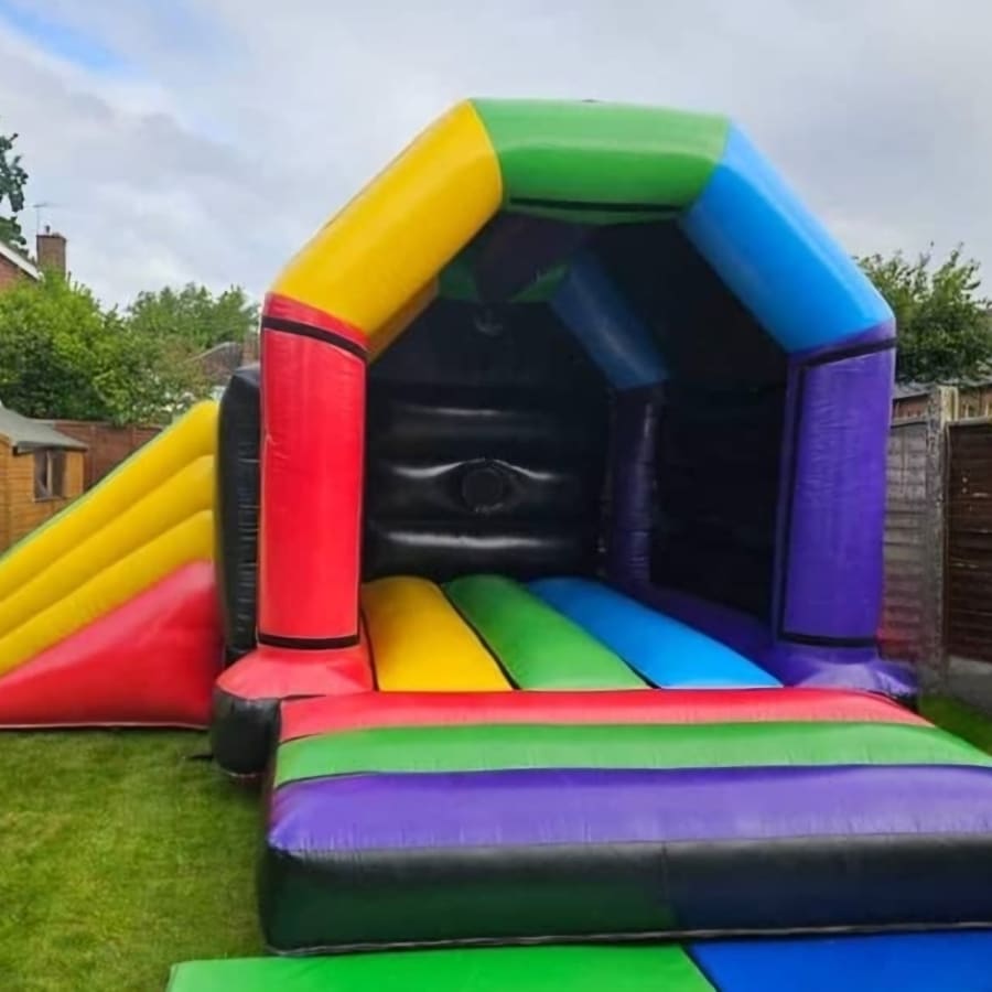 Rainbow Castle with Side Slide: Enter a world of enchantment with our Rainbow Castle! Complete with a side slide for extra excitement, this colourful fortress provides the perfect backdrop for magical adventures.